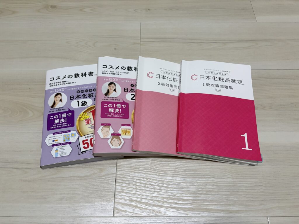 使ったのは、日本化粧品検定協会の公式テキストと過去問題集。